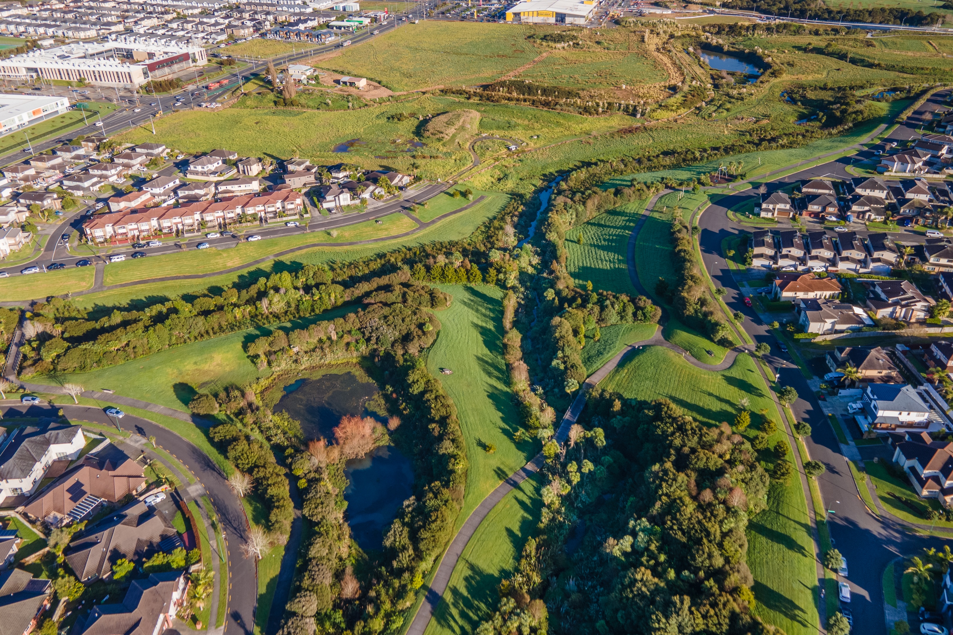 The upper catchment located in Flat Bush and Ormiston integrates 45km of ‘green finger’ stream and gullies into the urban environment. These networks maintain important habitats and migratory paths for native fish including banded kōkopu. The area is diverse: recent migrants from China and India make up a large portion of the population. Historic land use and more recent urban development have significantly modified the landscape, contributing to erosion, sediment runoff and pressure on stream health.